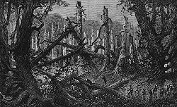 - Ouverture du milieu suite à la chute d'un grand arbres ou d'un groupe d'arbres (morts, malades, sénescentes ou exposés à un aléa climatique exceptionnel (tempête, cyclone, trombe.. ), laissant un espace dégagé où la lumière peut pénétrer ;